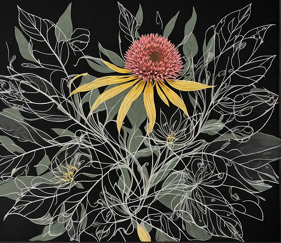 Das macht mir Spaß, ich bin immer so neugierig was rauskommt. Aber es ist auch als Huldigung für die geliebte Pflanze gedacht. Ich weiß, ein wenig seltsam... Die Struktur gefiel mir halt. Ich finde, die herrliche Echinacea ist in ihrer wirklichen Pracht ja eh nicht darstellbar.